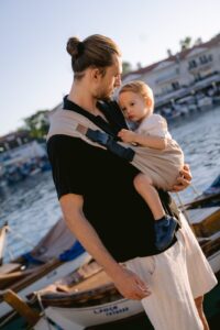 Sicheres Tragen eines Babys in einer Trage oder einem Tragetuch